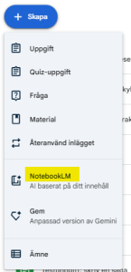 Tjoho! Nu finns NotebookLM i Classroom! Det innebär två saker. För det första kan du nu enkelt dela dina NLM:s via Classroom, för det andra kan du (trumvirvel) skapa en Notebook direkt utifrån det material du redan laddat upp i ett Classroom. Läs det igen och jubla sedan lite inombords innan du dels börjar generera utmärkta NLM:s, dels tipsar alla kollegor som möjligen missat denna nyhet. På  vår lathundssida ligger en liten tvåminutersfilm från pedagogen bakom IT och hjärnan (tack!) som visar exakt hur du gör.
